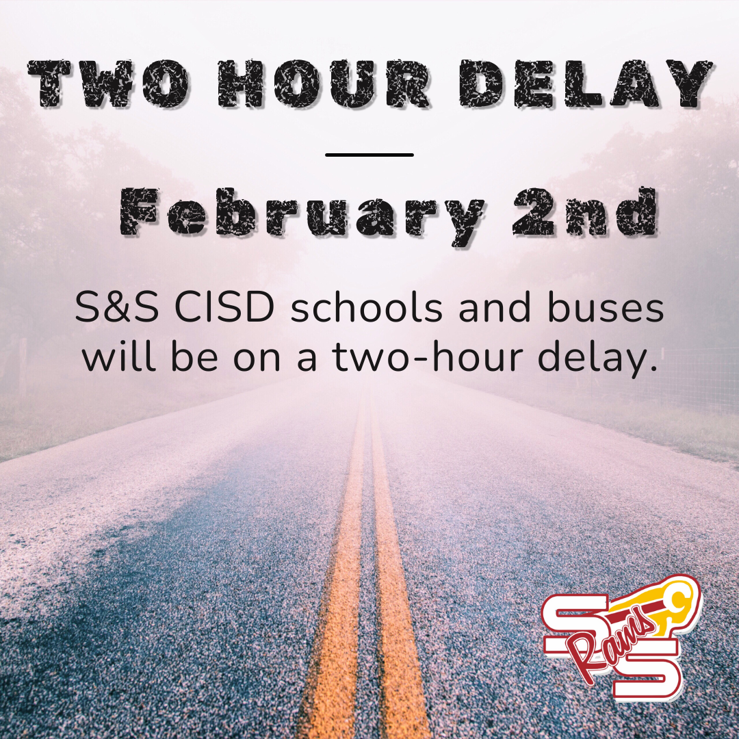 To let some of our back roads melt down a little bit more and for the safety of transportation in the morning, we will have a two-hour delay start for school tomorrow (Monday, February 2, 2026). Th...