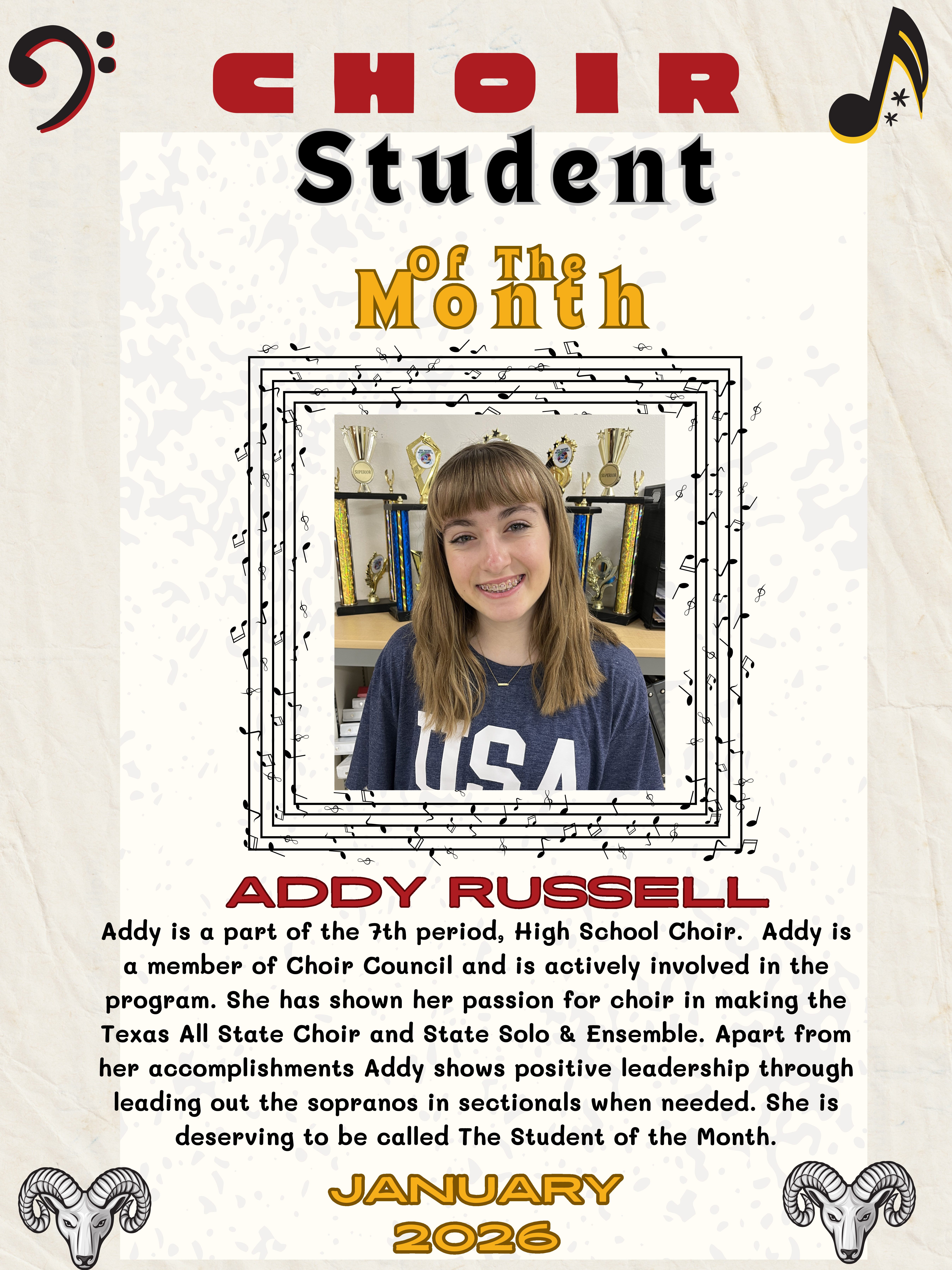Congratulations to the Middle School Choir students of the month for January!Make sure to click "View Original Post" to see each recipient.
