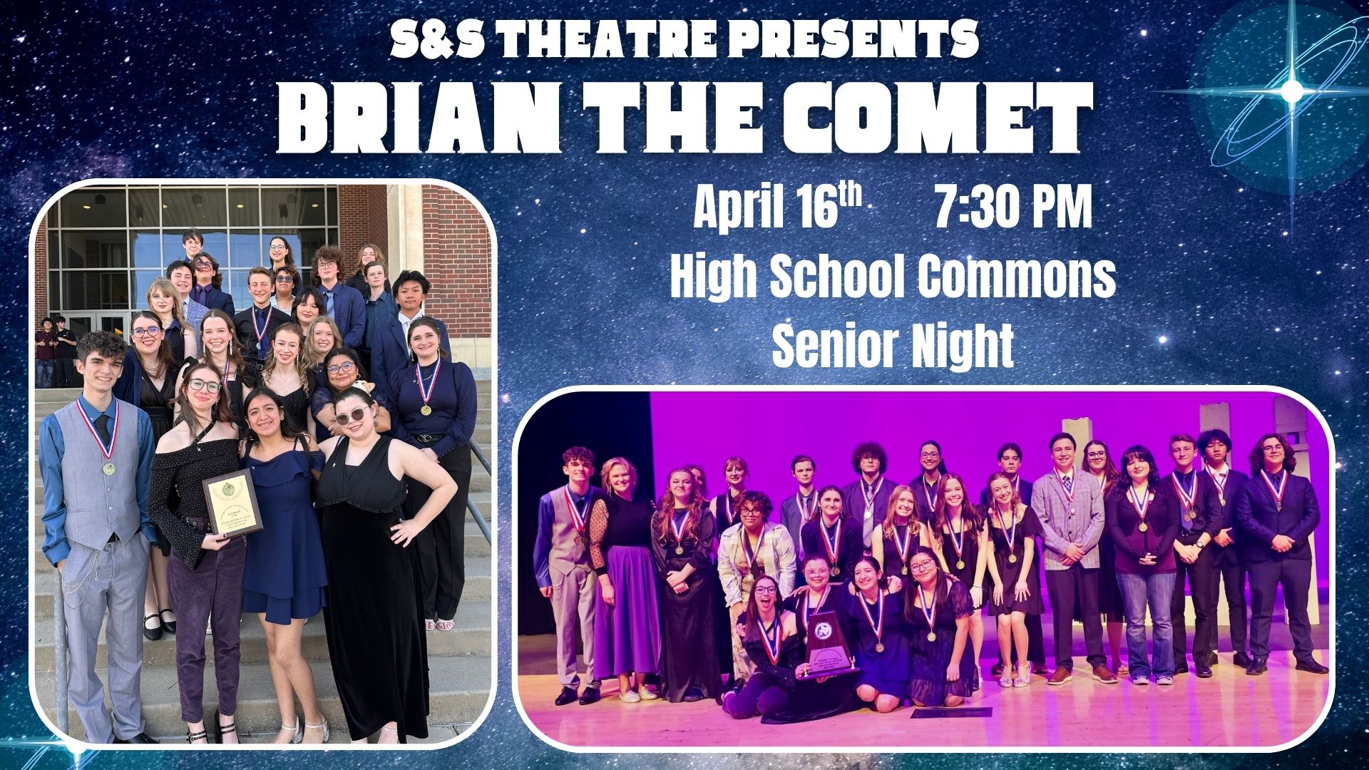 Join us for our final bow with Brian the Comet!April 16th -- 7:30 PMHigh School CommonsThis special performance will also include a tribute to our seniors—you won’t want to miss it!