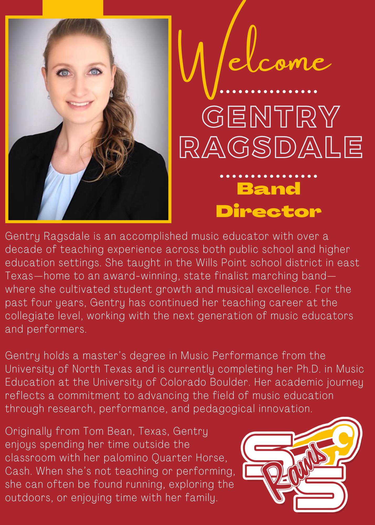 Welcome, Gentry Ragsdale ~ S&S Band Director